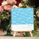 Un fondo azul claro, decorado con un patrón de cunas blancas. Personalice y agregue un nombre y una fecha. Se puede usar como un libro de fiestas, para planear al fiesta o como favores partidarios.