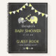 Chalkboard Look Yellow and Grey Baby Shower Guest Book. NO ES REAL CHALKBOARDA popular, vintage "chalkboard look" baby ducha como libro de invitados para un "Boy or Chica Elephant Themed Baby Shower". Este adorable libro de visitas sobre una ducha de bebé será un regalo muy preciado en los años venideros para la futura madre. Deja que tus invitados escriban algo especial o lo usen como un registro de regalos para bebés. Personalice el nombre de la madre y la fecha de la ducha de bebé en este libro de invitados. Este libro de visitas tiene tipografía de pizarra con huellas de bebé en la parte trasera. Para ver productos a juego, por favor visita "La Princesa Hungaricana - Una Boutique" @zazzle.com/hungaricanprincess*. ¡Enhorabuena.