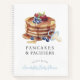 Este lindo libro de invitados de baby shower/brunch para niño con el tema 'panqueques y chupetes' presenta panqueques, fresas y un chupete azul. El reverso presenta un fondo blanco con un patrón de cuadros azules. Personalízalo según tus necesidades. Puedes encontrar productos que combinan en mi tienda.