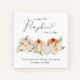 Un libro de visitas con un toque de género para la ducha de bebé que incluye "una calabaza dulce está en camino" en la tipografía moderna y un guión de moda con un toque de corazón y acuarelas de calabazas naranjas y blancas y ramos de flores. Indique el género del bebé si lo desea (por ejemplo, "está en camino").