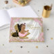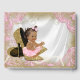 Libro de invitados sobre la ducha de bebé rosa y dorada con adorable bebé sentada en un elegante par de zapatos altos de tacón purpurina de oro sobre un hermoso fondo de remolino rosado y dorado de satén. Este libro de visitas para bebés con zapatos tacones altos de color rosa y dorado se personaliza fácilmente para tu evento simplemente añadiendo el texto de tu elección. Puedes mover y quitar las palabras de la ducha de bebé. Se trata de un diseño impreso sin purpurina real, perlas, etc.