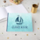 Invite a sus invitados a compartir sus deseos con este diseño de libro de invitados náutico, con una ilustración vintage de barco de vela con viento náutico azul marino. Su apellido aparece debajo en elegante letra azul oscuro, con sus nombres y fecha de la boda.