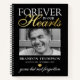 Cuaderno de invitados al funeral conmemorativo que incluye una foto de tu ser querido perdido, el texto "para siempre en nuestros corazones", su nombre, fechas de nacimiento/muerte, un falso corazón de Relieve metalizado de oro, y el dicho de recuerdo "desaparecido pero no olvidado".