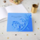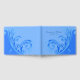 un libro de bodas azul bonito con un azul oscuro ornamentado florece. Personalice los campos de texto para su día especial.