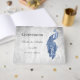 Graba a los invitados en tu gran día con un libro de oro del Día de la Boda del Pavo Real Azul. El diseño del libro de visitas presenta un pavo real elegante con un delicado follaje y un fondo de color gris. También hay material de boda adicional disponible con este diseño.