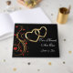 Este libro de visitas se muestra en negro con dos corazones adorables impresos con nombres de muestras personalizados. Personalizar este libro y cambia el texto al tuyo.