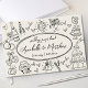 Quirky Esbozos A Mano De Un Exquisito Libro Boda. Este diseño creativo y lúdico es perfecto para las parejas que desean un conservador único y alegre para su día especial. Diseñado con un fondo blanco roto de inspiración vintage y ilustraciones negros atemporales, el libro de invitados presenta divertidos bocetos dibujados a mano que fluyen dinámicamente por el frente, la espalda y la columna vertebral para un aspecto cohesivo y artístico. La portada muestra dibujos caprichosos de elementos bodas, como una brillante bola de disco, campanas bodas, una cámara vintage, una torre de champán, corazones, un pastel, flores y un coche "Just Married", que le dan al diseño un ambiente animado y elegante. En el centro, las palabras "libro de visitas del Boda", los nombres de la novia y del novio, y la fecha del boda se muestran dentro de juguetones de doodle dibujados a mano, haciendo que el texto destaque mientras lo ata al estilo de esbozo general. En la parte trasera, un simple monograma inicial de las primeras iniciales de la novia y el novio vincula el diseño con el resto. La columna vertebral incluye sus nombres y fecha de boda, lo que hace de este libro de visitas una adición hermosa y memorable a su celebración. Todo personalizable para adaptarse a su estilo, está disponible como un keepsake impreso.