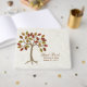 Libro de bodas con temática otoñal con gráficos de un colorido árbol de hojas de otoño, sobre un fondo de marfil de apariencia texturizada. Personaliza el texto, en la parte delantera, para tu día de boda.