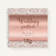 Este glamuroso cuaderno espiral de invitados de boda presenta un elegante monograma de letra cursiva de la novia y el novio, tipografía moderna de letra cursiva para el título, y el fondo degradado de rosa oro está bordeado en la parte superior e inferior con damasco de purpurina de rosa oro.