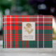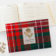 Libro de invitados inspirado en bodas de las Highlands con el clásico patrón de cuadros Wilson tartán moderno en rojo, verde, azul y blanco. Un área de texto enmarcada en oro, en la portada del libro, tiene gráficos de un cardo dorado y texto personalizado negro listo para personalizar.