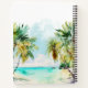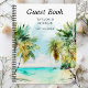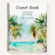 Este elegante y hermoso libro de huéspedes cuenta con una playa de color agua, un cielo azul y palmeras. El texto combina guiones manuscritos y sans serif para un estilo elegante y moderno. Es perfecto para una boda de verano o destino tropical.