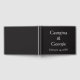 El diseño de este libro de personalizable boda presenta un aspecto sencillo, limpio y sencillo, con texto blanco sobre un fondo oscuro. Los nombres y la fecha se pueden personalizar.