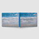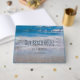 Libro de invitados personalizado de casa de playa azul blanco costero océano para cama y desayuno. Hermosa agua azul y playa tropical arenosa. Diseño chic, moderno, trendy, náutico. Imagen copyright Marg Seregelyi Photography.