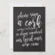 Un elegante cartel de boda de vanguardia, presenta el texto "Por favor, firme un corcho y déjelo en el marco para que siempre recordemos a nuestros seres queridos que vinieron" en una fuente de escritura extrovertida, la textura del pincel añade un sentimiento espontáneo y juguetón. El color de fondo se puede personalizar según tus necesidades y preferencias, por favor contáctame si tienes alguna solicitud especial.