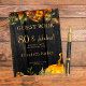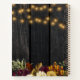 Hermosas flores de otoño naranja oxidado y burdeos oscuro y bordes de calabaza con hilos de luces brillantes doradas sobre un fondo de madera de granero marrón oscuro que crean un elegante y encantador libro de firmas para cumpleaños de 21, 30, 40, 50, 60, 70, 75, 80, 90, 100 años (cualquier edad) con una tipografía dorada de escritura a mano de moda. +++++++++ Fácil de personalizar con tus detalles. Adecuado para reuniones tradicionales de granja rústica en el patio trasero con familiares y amigos.