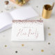 Libro de invitados de despedida de soltera con purpurina de oro rosa, un recuerdo especial para la futura novia. El título principal está en una fuente de escritura y personaliza fácilmente el resto del texto con tus propios datos.