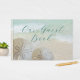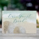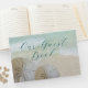 libro de bodas con temática playa y diseño de dos dólares de arena. El guión en azul-verde es "Nuestro libro de invitados" sobre un fondo de arena de la playa con dos dólares de arena natural realistas.