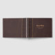 El libro de bodas marrones hecho con un estilo de cuero antiguo con acentos dorados. Personalice el texto del personalizado para su día especial.
