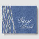 Libro de invitados de fiesta y evento de cumpleaños de mezclilla y diamante con bonitas cadenas de diamantes sobre un fondo de mezclilla. Este elegante libro de invitados de mezclilla y diamante se personaliza fácilmente para su evento simplemente agregando el texto de su elección en el estilo de fuente que prefiera.