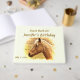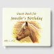 Usted puede fácilmente personalizar o eliminar el texto en este maravilloso libro de invitados de la fiesta de cumpleaños que incluye un hermoso caballo dorado y marrón iluminado por el sol amarillo.