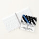 Este diseño incluye una bandera de la fuerza policial con rayas blancas y negras, y una delgada franja azul. Este libro de visitas es grandioso por mostrar aprecio a un oficial que celebra un aniversario o dar las gracias a un oficial de policía, comisario, capitán o jefe que se retira por sus años de servicio.