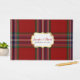 Colorido libro de bodas hecho en el clásico patrón de lona tartan del clan escocés rojo MacFarlane. Un área de texto decorativo, en la parte delantera del libro, tiene texto personalizado listo para personalizar. Hay productos bodas que coinciden.