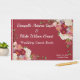 Una disposición pintada de borgoña, peonías rosas y blancas y otras flores y botánicos decoran las esquinas alternativas de este diseño rojo profundo para un libro de invitados para su boda. Coincide y coordina con otras invitaciones y elementos de novia para tu día especial. Un tipo de letra de guión blanco enumera los nombres completos de la pareja, mientras que un tipo de letra más pequeño se utiliza para la fecha de boda y la ubicación del boda. Recuerde sustituir su información sobre la columna vertebral por un libro de visitas único para su boda.