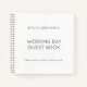 Libro de invitados simple Día de la Boda Blanca Negra. Diseño tipográfico totalmente personalizable con texto negro moderno sobre fondo blanco. Personaliza fácilmente el texto en la parte delantera y trasera. También puede cambiar el texto y los colores de fondo si desea coincidir con su tema de color boda a través de la opción Personalizar adicional.