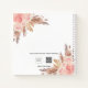 Un libro de invitados para una despedida de soltera/fin de semana de soltera. Un fondo blanco. Decorada con oro rosa, flores rosas, pampas pasto. Personalice y agregue un nombre y una fecha. Puede utilizarse como libro de visitas o para planificar el fiesta.