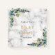 Piedra de mármol como fondo. Decorado con vegetación eucaliptos y follaje dorado. Añadir un nombre y una fecha.