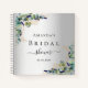 Un falso color de fondo plateado. Decorado con vegetación eucaliptos y follaje dorado. Añadir un nombre y una fecha.