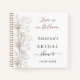 Un color de fondo blanco. Decorado con flores silvestres de color beige y crema. Añadir un nombre y una fecha. Texto: El amor está en flor
