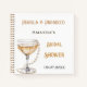 Un color de fondo blanco. Decorado con un vaso de Prosecco brillante y perlas. Añadir un nombre y una fecha.