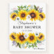 Ilustración de hermosos girasoles amarillos, flores blancas, rosadas y moradas.