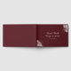 Este elegante libro de firmas para invitados a la boda cuenta con una rica cubierta de color burgundy con un suave brillo como de nubes y destellos plateados dispersos, creando un resplandor lujoso y romántico. El diseño enmarca sus nombres personalizados y la fecha de la boda de manera hermosa, lo que lo convierte en un punto focal impresionante en su mesa de bienvenida. En el interior, los invitados pueden dejar mensajes sinceros y buenos deseos, convirtiendo este libro de firmas en un preciado recuerdo que amarán hojeando durante años.