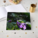 Fotografía natural y encantadora de violetas salvajes. Diseño en portada dura con textos para Celebración de la Vida al personalizar. Puede cambiar fácilmente el texto (color, fuente, tamaño y posición) haciendo clic en el botón personalizar. Disponible también en cuaderno en espiral. Celebración coincidente de la invitación a la vida, simpatía Gracias tarjeta de foto, etiquetas de dirección familiar y más...
