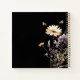 Un fondo negro. Decorado con abejas y flores silvestres pintadas en violeta. Personalice y agregue un nombre y una edad. Texto blanco.