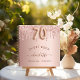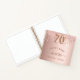 Un libro de visitas para una fiesta de cumpleaños 70 femenina y glamurosa. Un elegante fondo dorado rosa con goteo, pinturas con goteo. Añade tu nombre, texto.