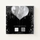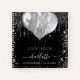 Un elegante fondo negro con tonterías de purpurina plateado gotean y polvo. Decorada con globos morados. Personalice y agregue un nombre, edad y fecha. El nombre está escrito con un guión moderno de estilo con letras a mano con toques. Para que los cambios sólo eliminen el nombre del ejemplo, deje los espacios o la emoji delante y después del nombre. Se puede usar como un libro de fiestas, para planear al fiesta o como favores partidarios.