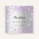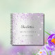 Un falso fondo metálico plateado decorado con polvo purpurina violeta y falso. Personalice y agregue un nombre y una fecha.