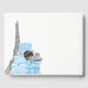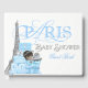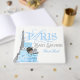 Libro de invitados para baby shower de París con adorable bebé afroamericano de etnia étnica en regalos azules y plateados y fondo de la Torre Eiffel. Puede agregar el texto que desee en la parte frontal y la columna vertebral para personalizar este adorable libro de invitados para baby shower de niño en París.