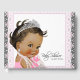 Libro de invitados para baby shower de princesa étnica con adorable bebé étnica que lleva una bonita tiara de diamantes, guantes rosados y perlas sobre un bonito fondo de encaje rosa y negro. Puedes personalizar fácilmente este libro de invitados para baby shower de princesa simplemente agregando el texto que desees.