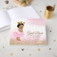 Libro de invitados para baby shower rosa y dorado con adorable princesa étnica afroamericana que lleva un precioso tutú de bailarina rosa, corona dorada y collar de perlas sobre un hermoso fondo rosa y dorado. Puedes personalizar fácilmente este lindo libro de invitados para baby shower simplemente agregando tu texto. También puedes eliminar el fondo rosa y blanco y agregar el color de fondo que desees.
