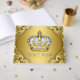 Libro de invitados para baby shower de príncipe con corona dorada y azul bebé sobre un elegante fondo de remolino dorado. Este hermoso libro de invitados para baby shower azul bebé y dorado se personaliza fácilmente para su evento simplemente agregando el texto que desee.