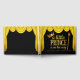 Libro de invitados para baby shower del príncipe con elegantes cortinas doradas sobre fondo negro con corona real y cetro y palabras doradas elegantes. Este libro de invitados para baby shower del príncipe en negro y dorado se personaliza fácilmente simplemente añadiendo el texto que desee. También puede cambiar el color de fondo y mover o eliminar la corona, el cetro y las palabras según sea necesario para su evento.