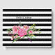 libro de bodas de moda hecho con un patrón de rayas horizontales en blanco y negro, con acuarelas gráficas de un ramo de peonía rosa. Personalice los nombres de la novia y del novio para su día especial.