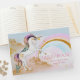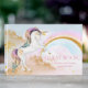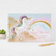 Libro de invitados para fiesta de cumpleaños de unicornio con hermoso unicornio pastel en un fondo de arcoíris y nube dorada. Este hermoso libro de invitados de unicornio se personaliza fácilmente para su evento simplemente agregando el texto de su elección en el estilo de fuente que prefiera. También puede cambiar el color de fondo en este adorable libro de invitados para fiesta de cumpleaños de unicornio. Este es un diseño impreso sin purpurina real.