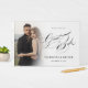 Este libro de bodas combina perfectamente elegancia y estilo minimalista moderno. Con dos hermosas fotos de la pareja feliz y un simple pedido de firmar el libro de visitas. El tipo de letra del guión añade un toque de sofisticación, mientras que el diseño moderno lo mantiene fresco y elegante. Es la adición perfecta a la pantalla de tu boda.