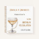 Un color de fondo blanco. Decorado con un vaso de Prosecco brillante y perlas. Añadir un nombre y una fecha.