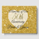 "Todo ese purpurina, no es oro". Y, sin duda, no todo un matrimonio de 50 años es "felicidad de matrimonio". Sin embargo, este fabuloso libro de visitas hace un delicioso recuerdo de este acontecimiento emblemático. .. espacio para que los invitados firmen y compartan su memoria favorita de la pareja de celebración. Un fondo de oro "reluciente" está cubierto por un corazón blanco que proporciona un muy necesario contraste para la imagen de texto "50″. Esto está enmarcado por un texto apropiado que corona el texto "Bridge & Groom" que puedes personalizar con los nombres de la pareja.